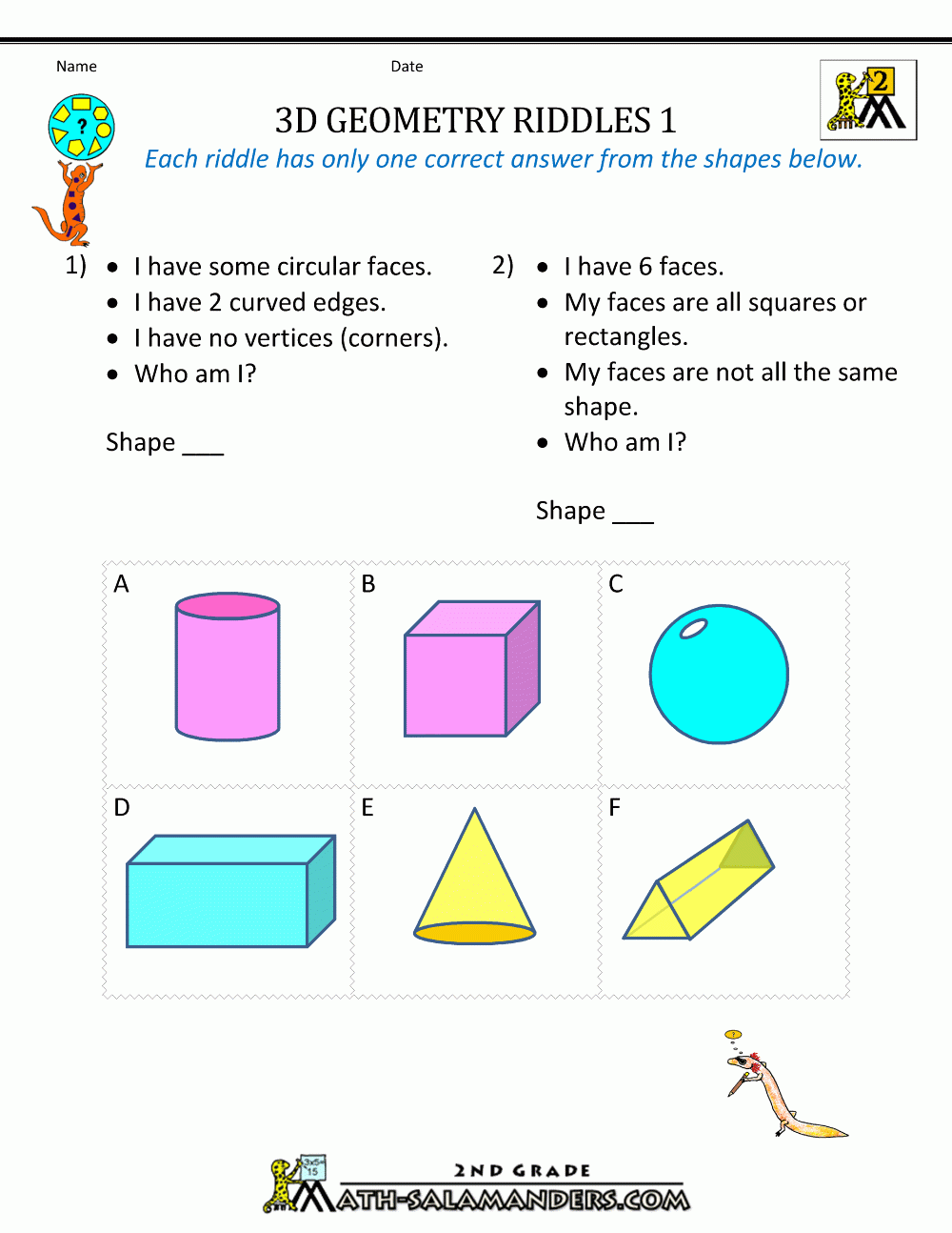 3d Shapes Worksheets 2nd Grade