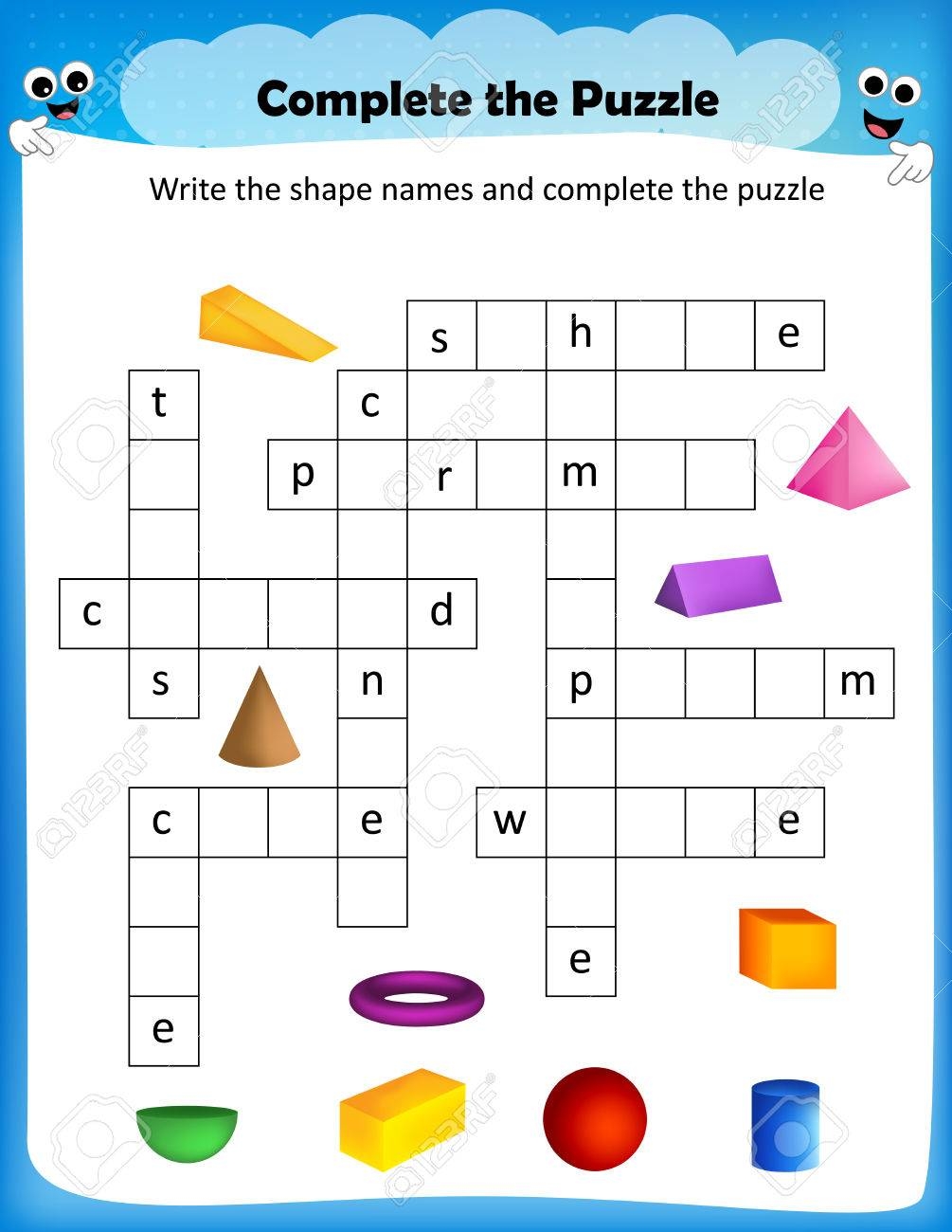 Worksheet Complete The Crossword Puzzle 3D Shapes Worksheet For Preschool Kids Royalty Free SVG Cliparts Vectors And Stock Illustration Image 67016669