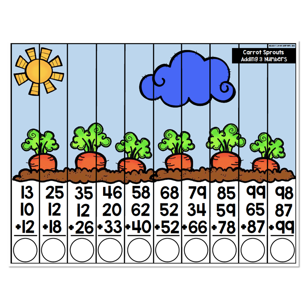 May Math Puzzle Carrot Sprouts Adding 3 Numbers Lucky Little