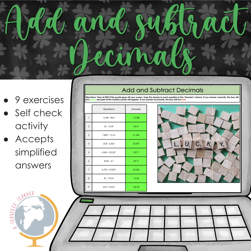 Add And Subtract Decimals St Patrick s Mystery Puzzle XPPP