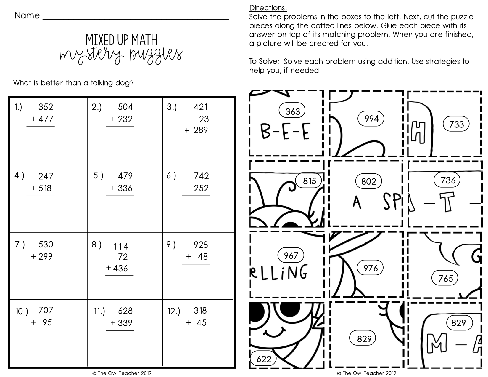 Add U0026 Subtract Within 1000 Mixed Up Puzzles Printable U0026 Digital Google The Owl Teacher