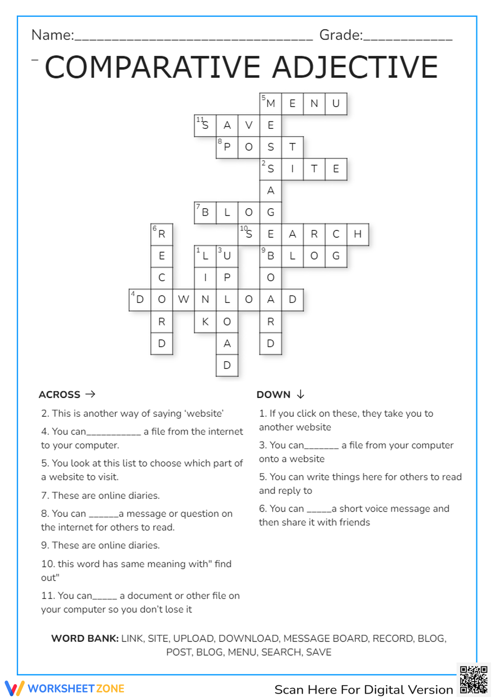 Adjective Crossword Puzzle Worksheet