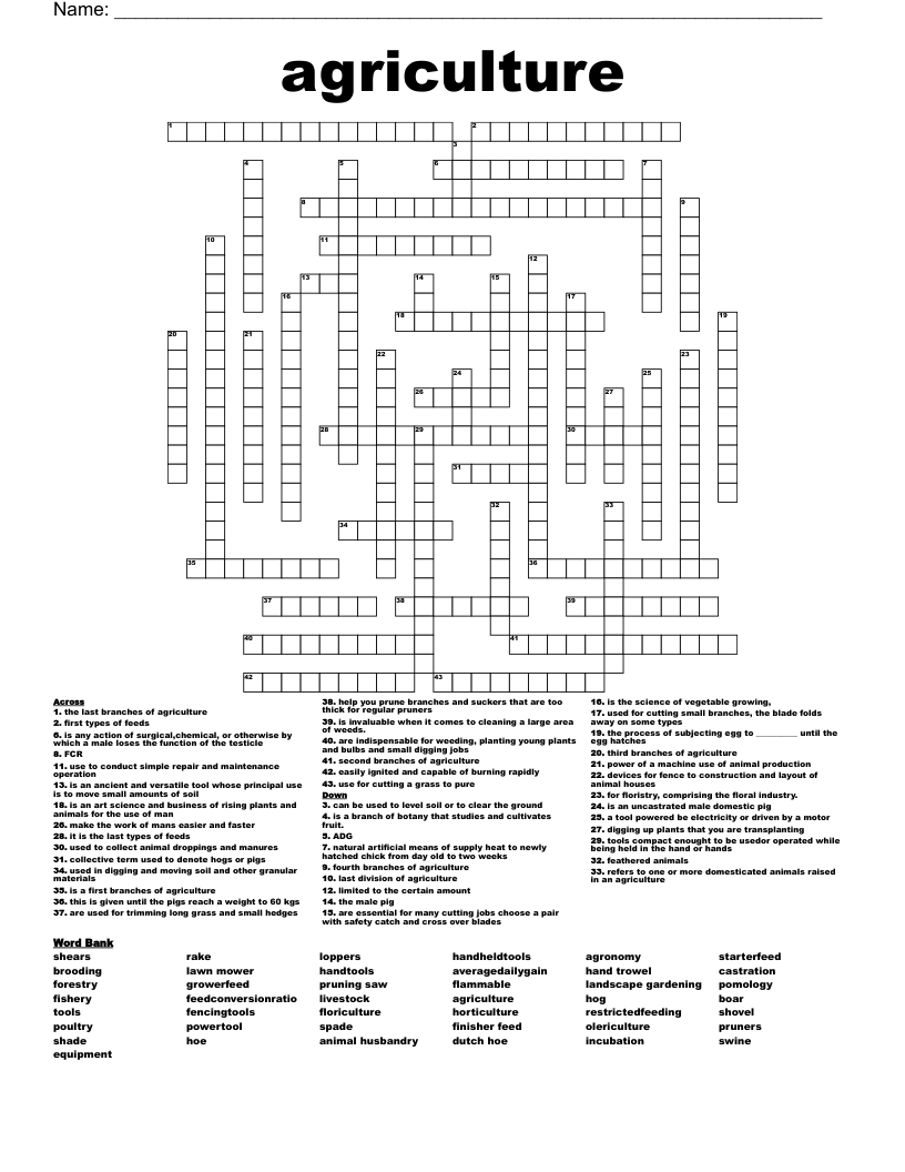 If you’re looking for a fun and educational activity to engage students in learning about agriculture, look no further than agriculture crossword puzzle worksheets. These worksheets are a great way to test knowledge of agricultural terms and concepts while having fun.