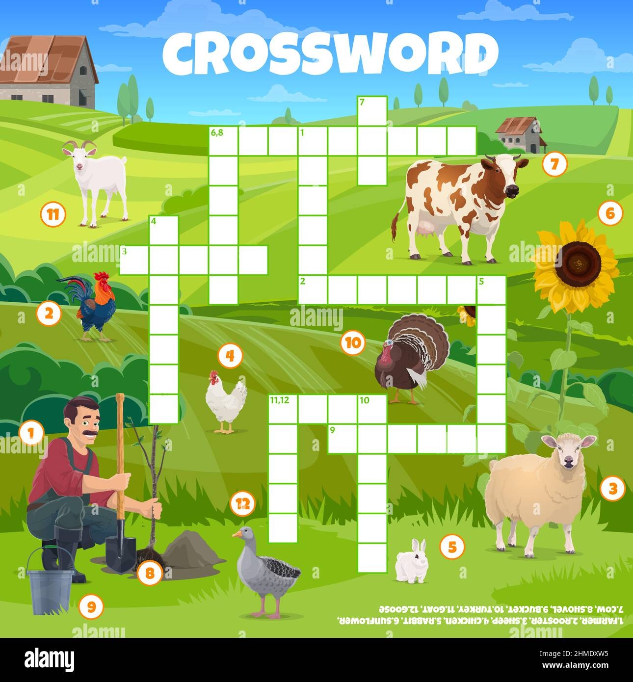 Agriculture Farming Crossword Puzzle Game Vector Worksheet Cartoon Farmer And Farm Animals Kids Crossword Logical Quiz Playing Activity Page With C Stock Vector Image U0026 Art Alamy