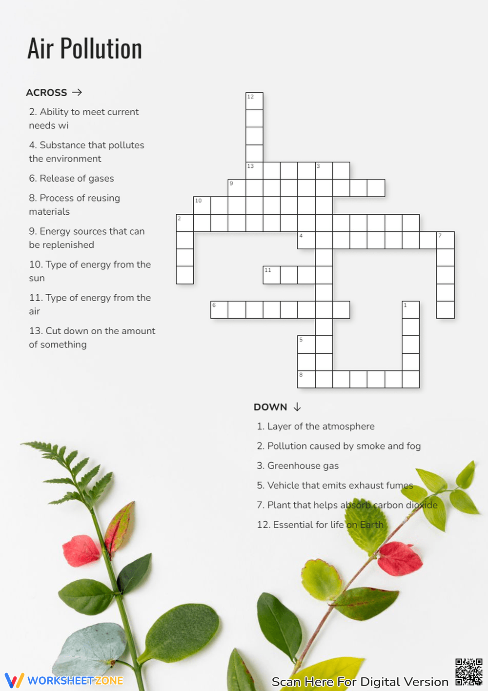 Remember, learning about air pollution is essential for creating a healthier environment for future generations. By taking small steps like solving a crossword puzzle worksheet, you’re contributing to the greater good and making a positive impact on the world around you.