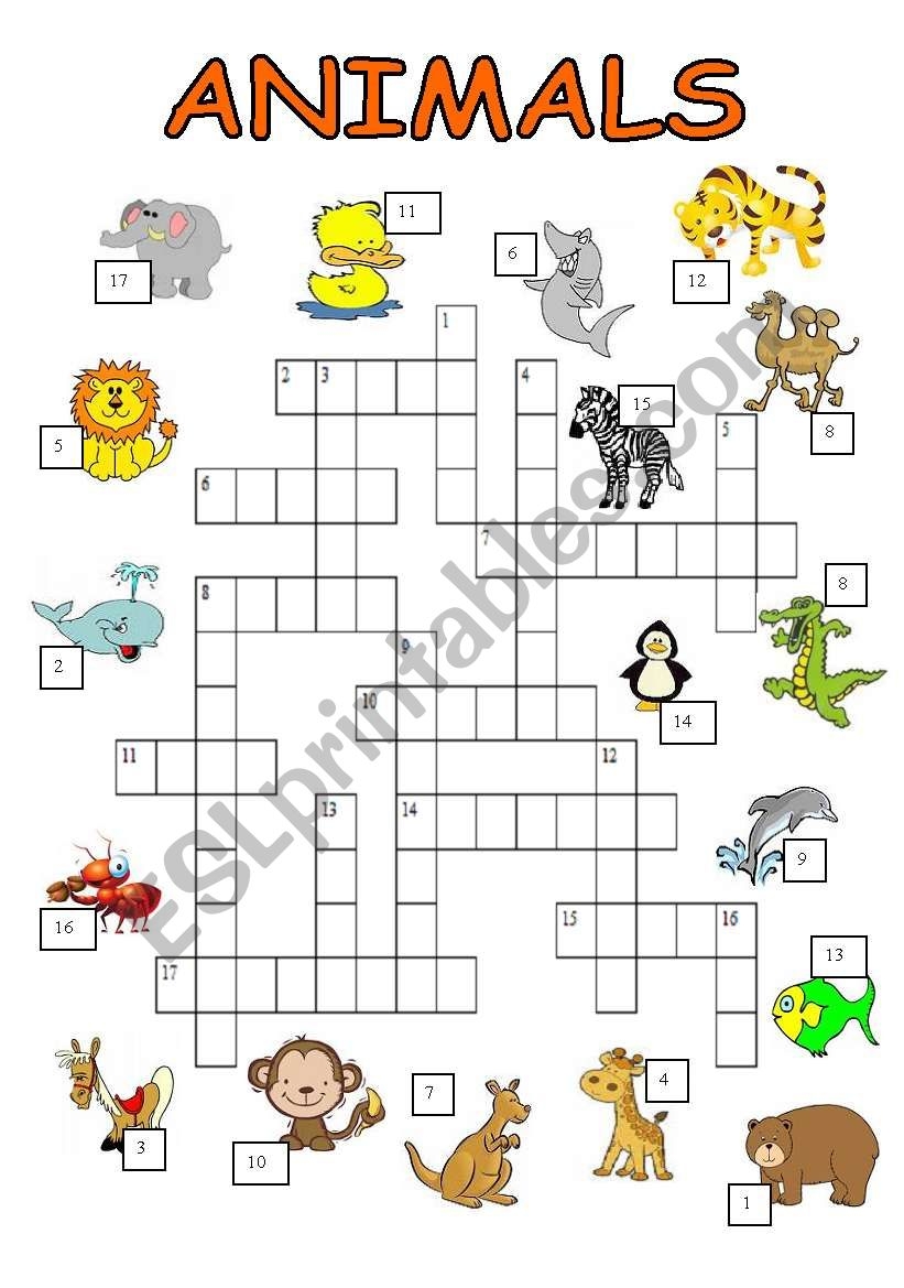 Animal Crossword Puzzle Worksheets