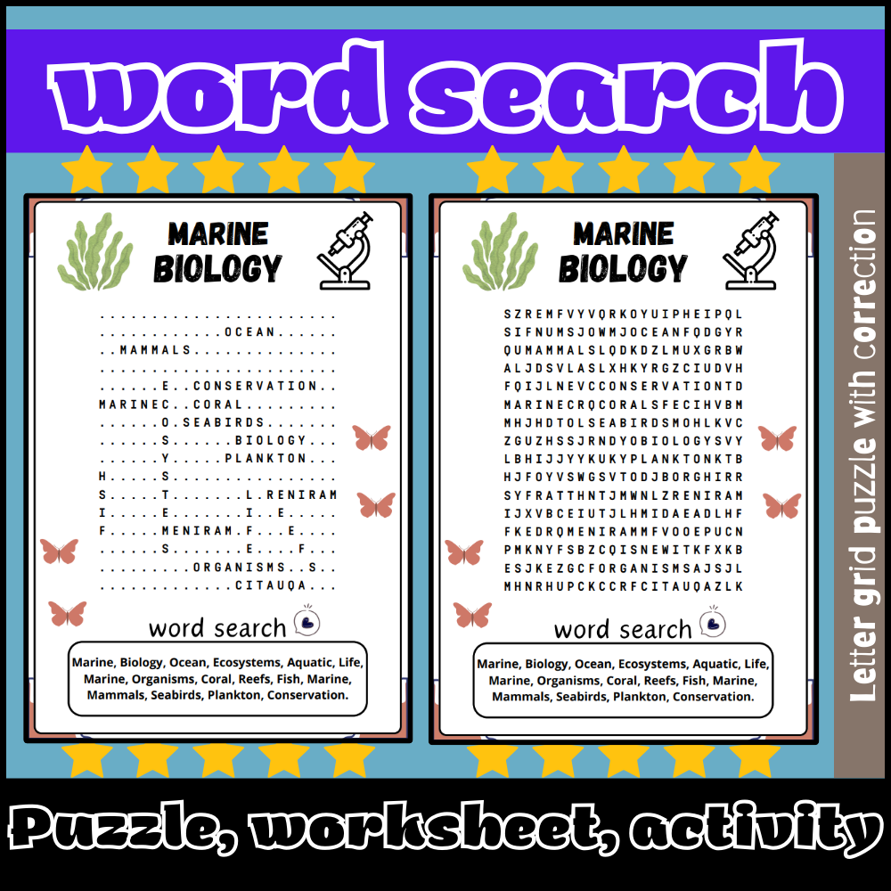 Marine Biology Word Search Puzzle Worksheet Activity Made By Teachers