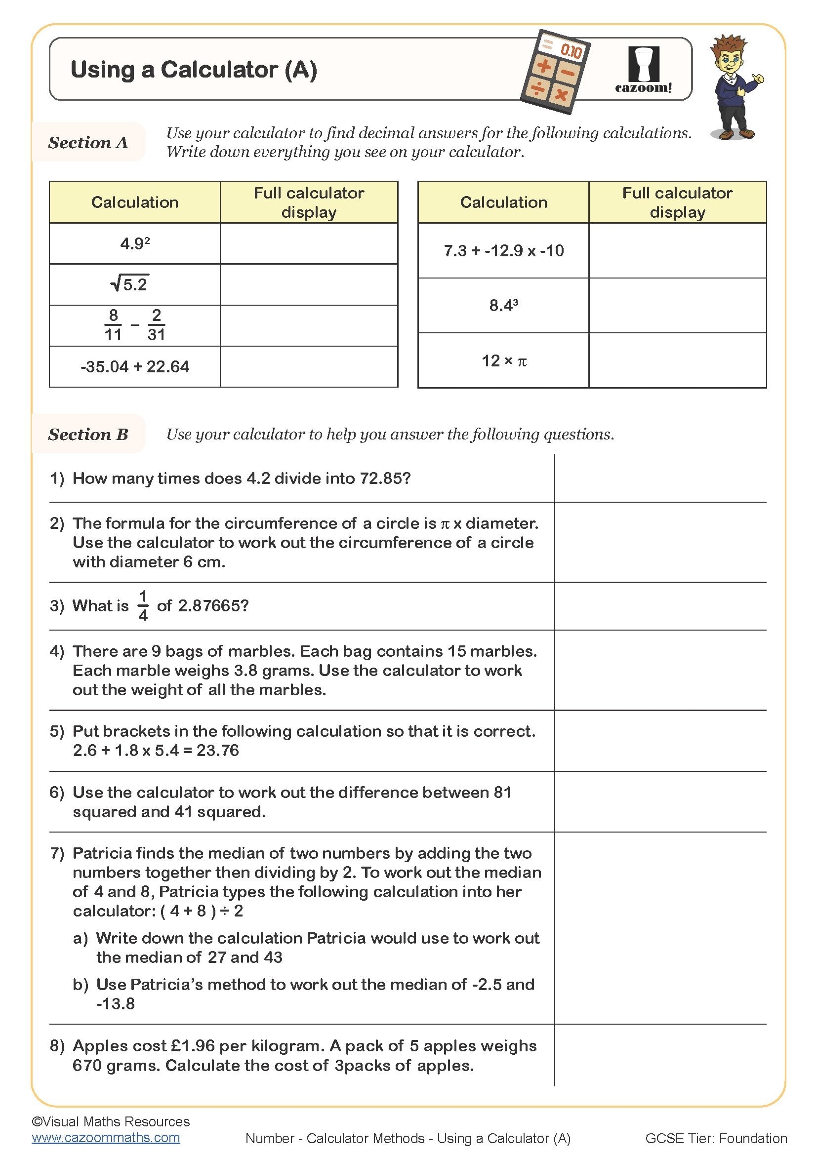 Using A Calculator A Worksheet Printable Maths Worksheets