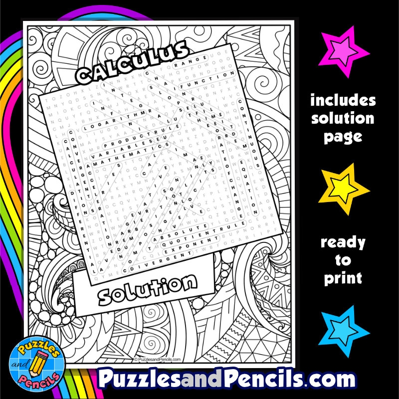 Calculus Word Search Puzzle With Coloring Mathematics Wordsearch Made By Teachers