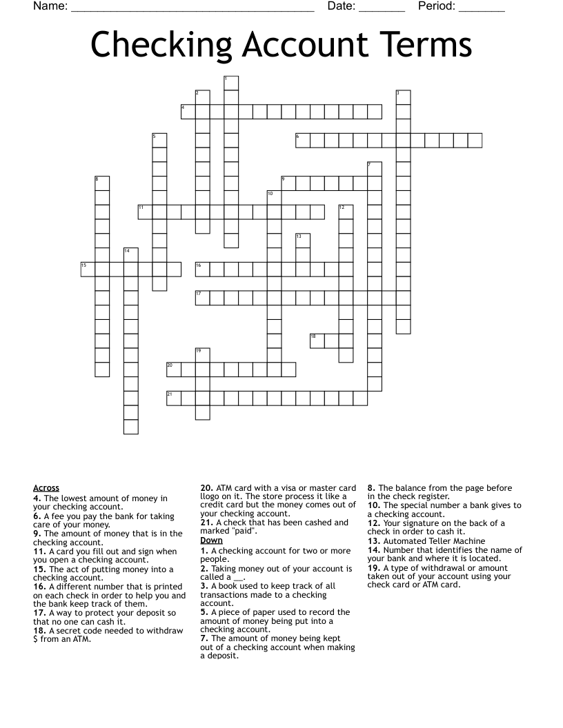 Checking Account Terms Crossword WordMint