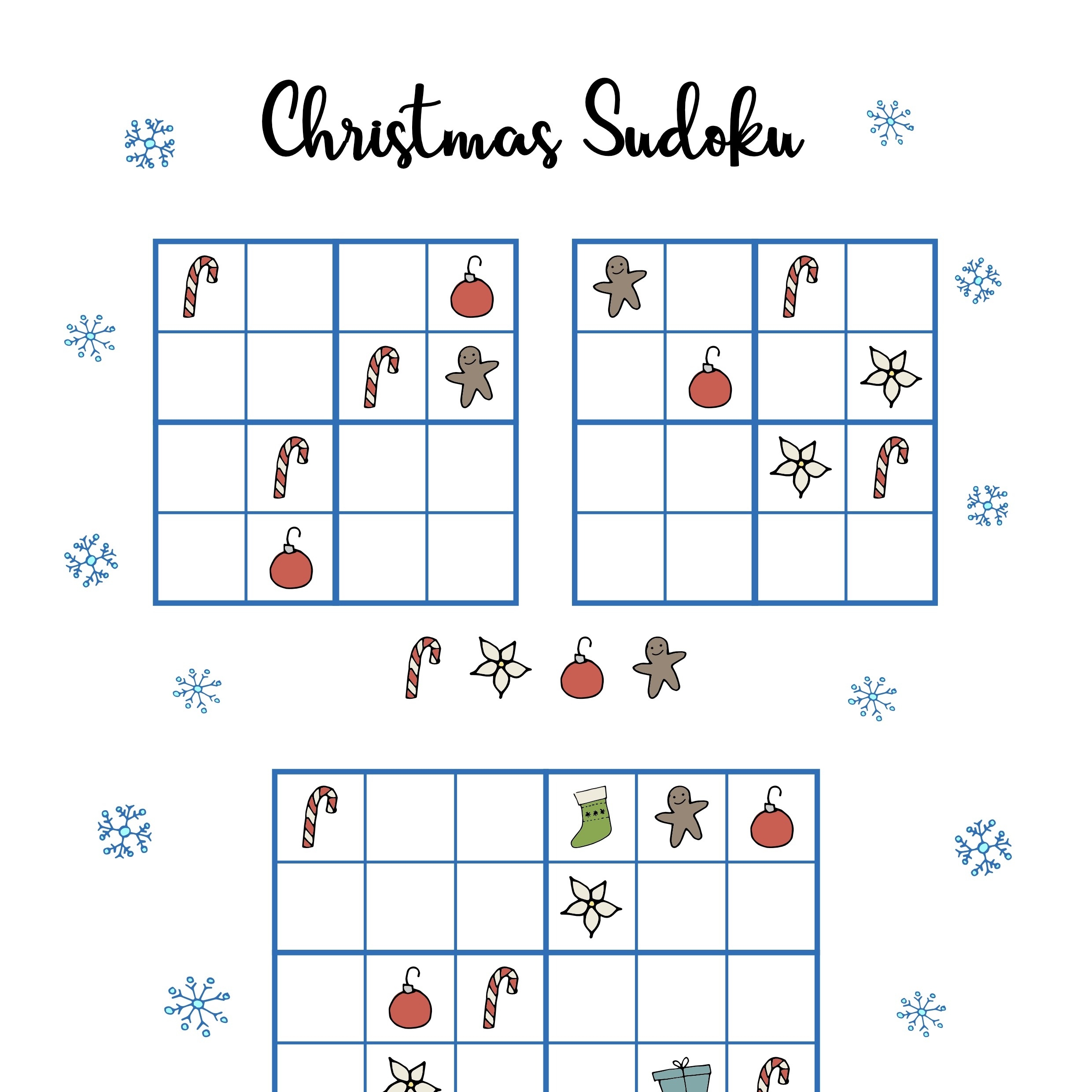 4×4 Christmas Sudoku Puzzles Printable PDF