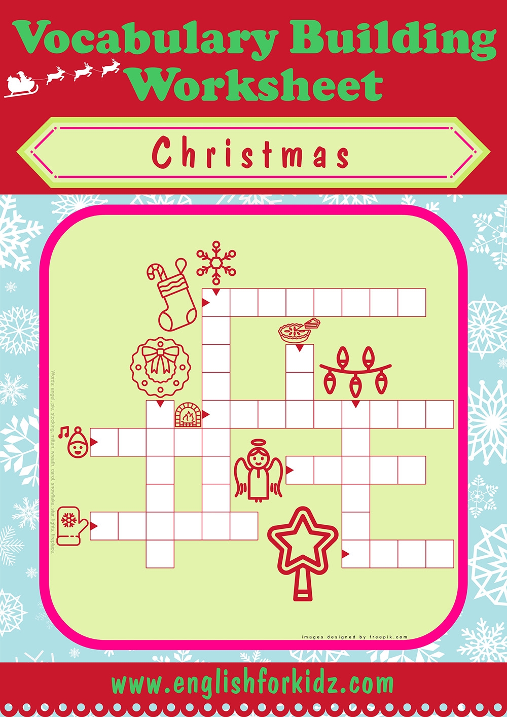 English For Kids Step By Step Christmas Worksheets Crossword Puzzles