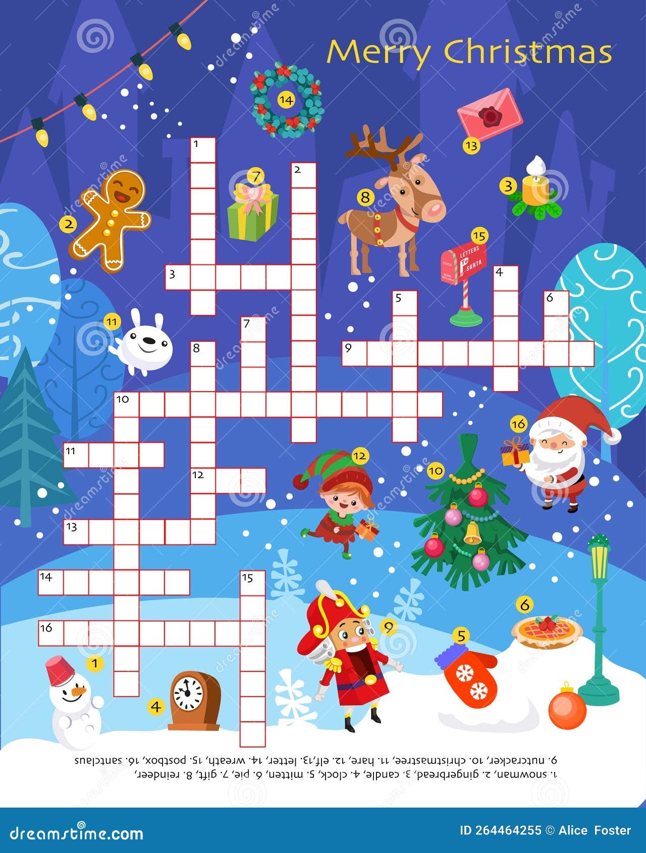 Christmas Crossword Puzzle Game Grid Cartoon Holiday Items And