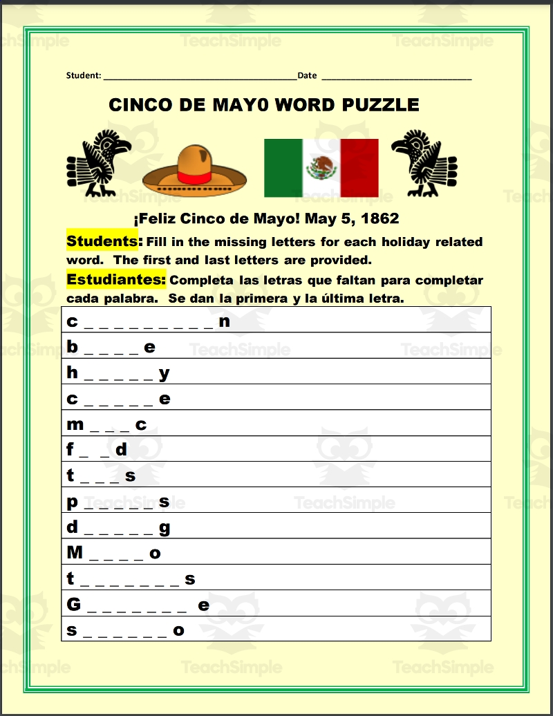 So, this Cinco De Mayo, why not spice up your celebrations with some puzzle worksheets? They are a fantastic way to keep kids entertained while also learning about the history and traditions of this important holiday. Give them a try and watch as your children have a blast while learning!