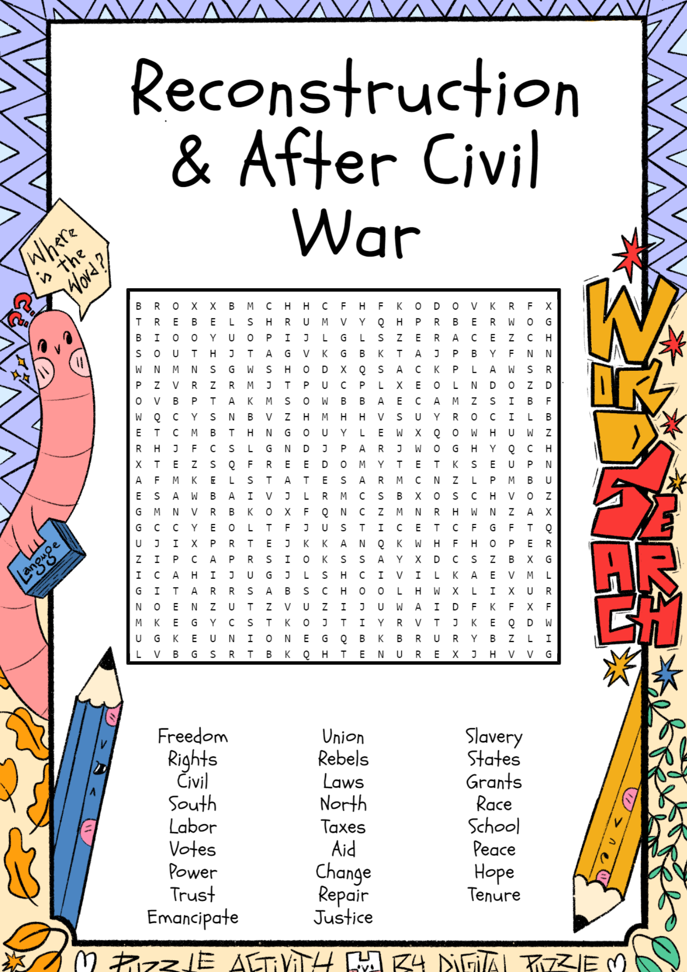 Reconstruction U0026 After Civil War Word Search Puzzle Worksheet Activity Made By Teachers
