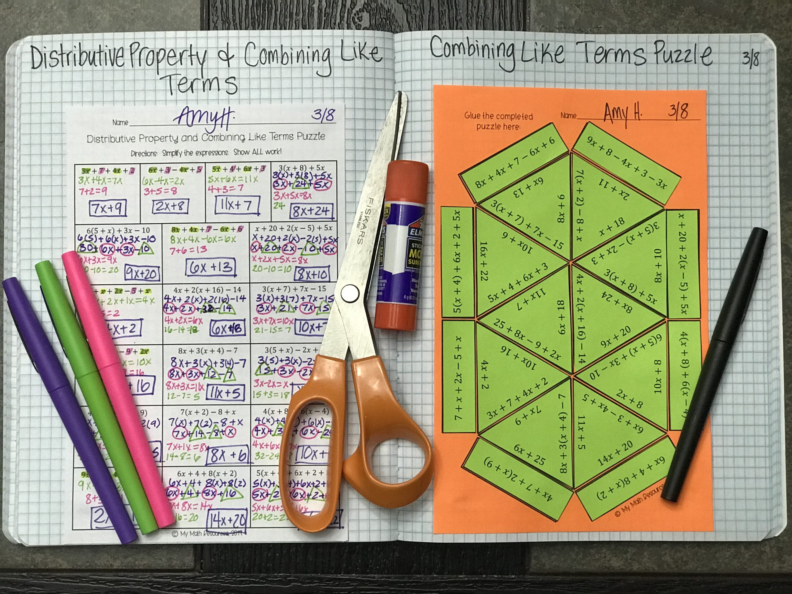 Distributive Property U0026 Combining Like Terms Puzzle 2 CCSS 6 EE A 3