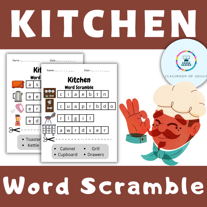 Kitchen Word Scramble Puzzle Cooking Terms Vocabulary Worksheet
