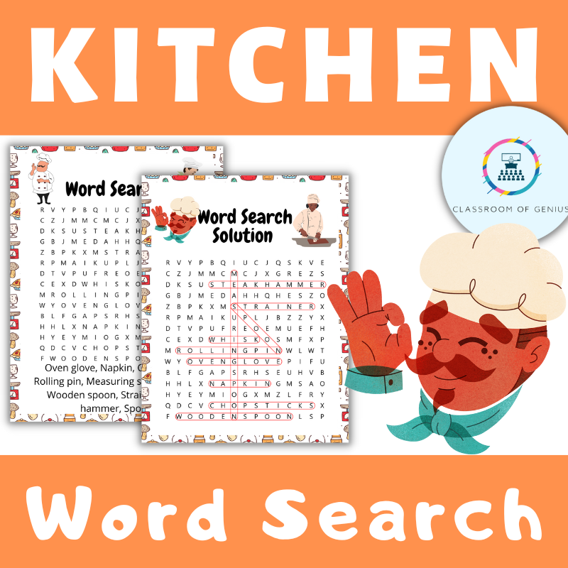 Kitchen Word Search Puzzle Cooking Terms Vocabulary Worksheet