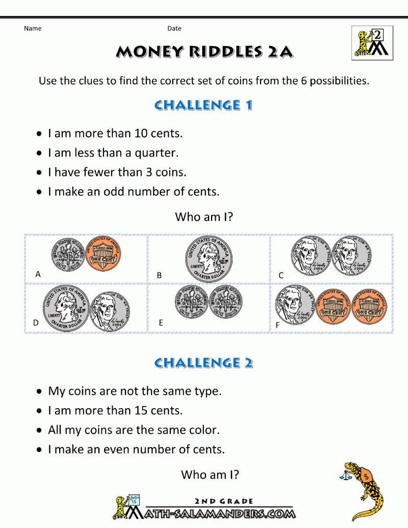Money Math Worksheets Money Riddles
