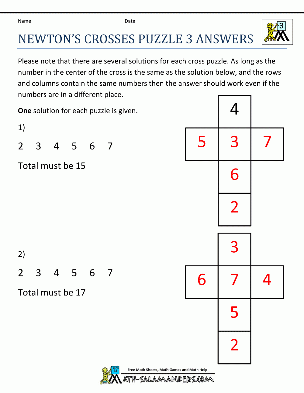 Cross Number Puzzle Worksheet Answers