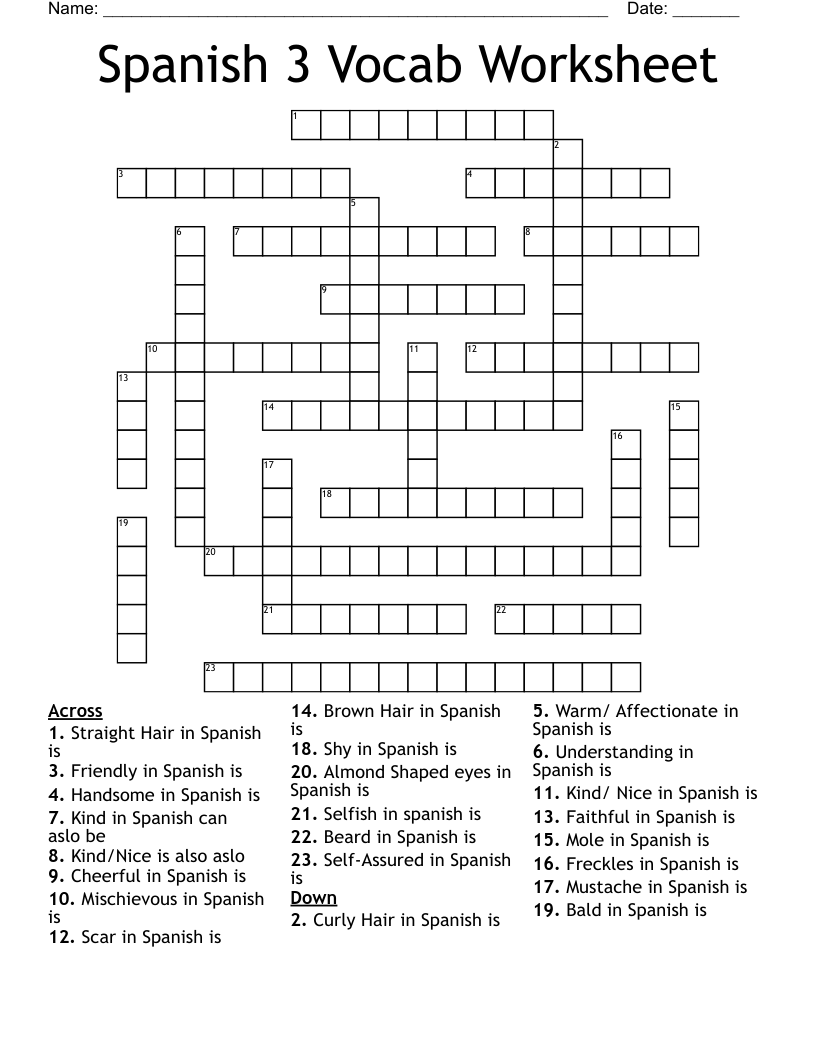 Spanish 3 Vocab Worksheet Crossword WordMint