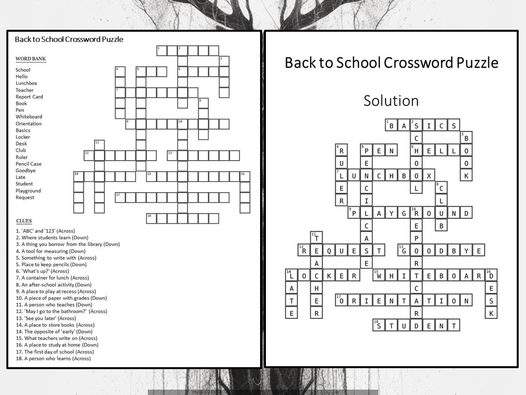 Back To School Crossword Puzzle Worksheet Activity Teaching Resources