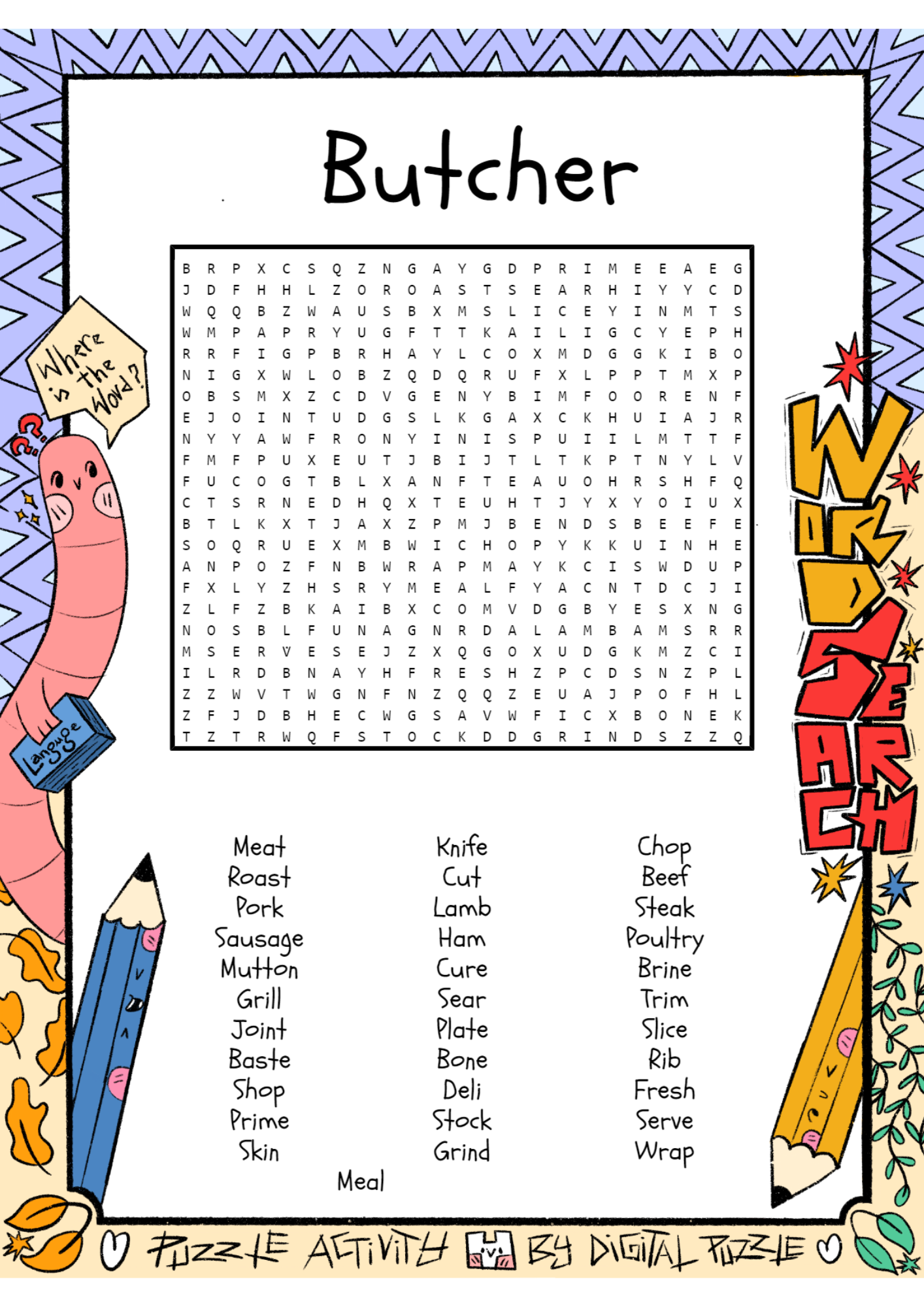 Butcher Word Search Puzzle Worksheet Activity Made By Teachers