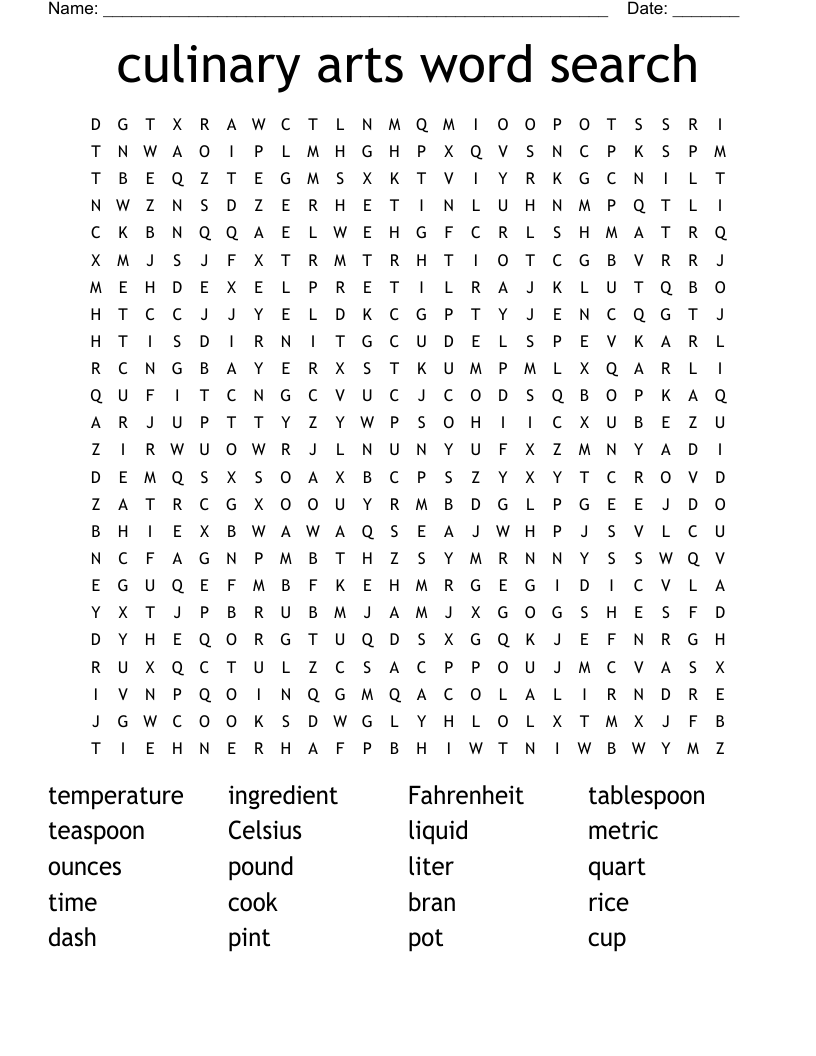 Culinary Arts Word Search WordMint