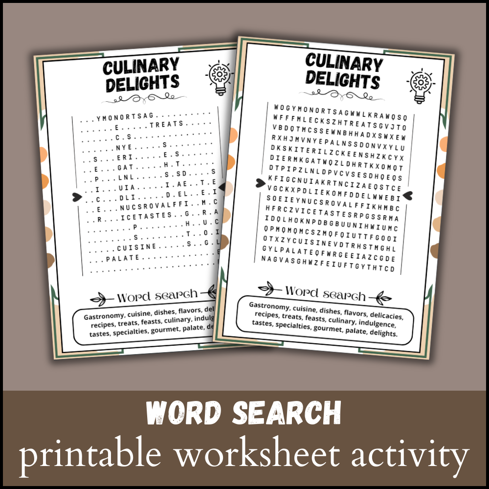 From crossword puzzles that test your knowledge of cooking terms to word searches that help you learn about different cuisines, these worksheets cover a wide range of topics in the culinary world. You can have fun while sharpening your culinary skills at the same time.