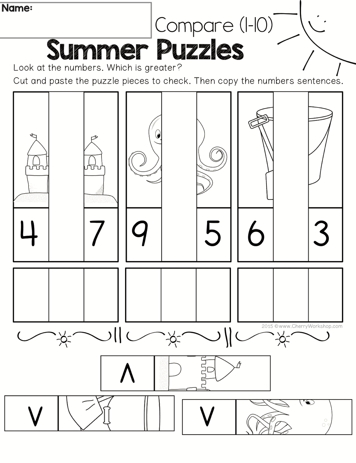 Printable Cut And Paste Summer Puzzle Worksheet For Toddler