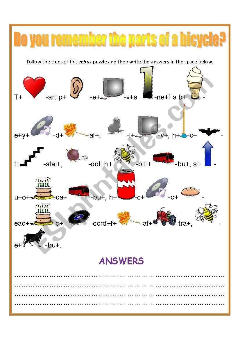 Parts Of A Bicycle Rebus Puzzle ESL Worksheet By Renda
