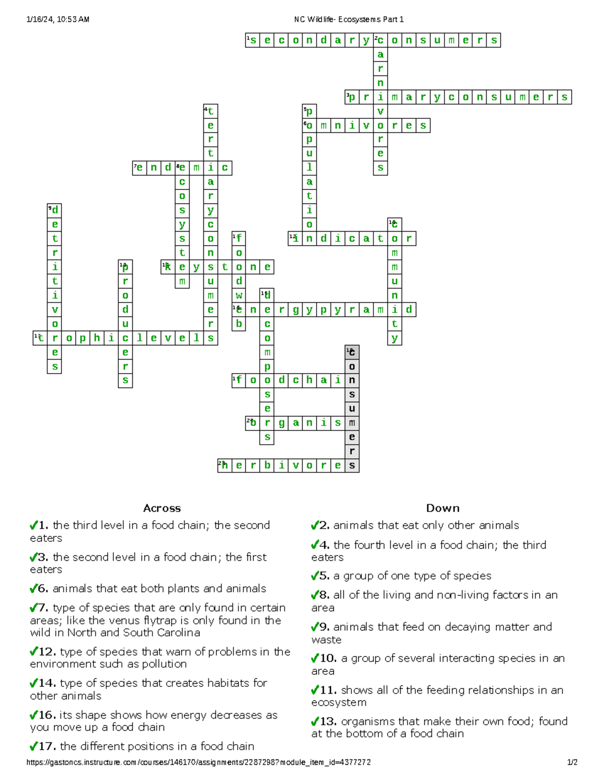 Ecology Crossword Puzzle Worksheets Answers