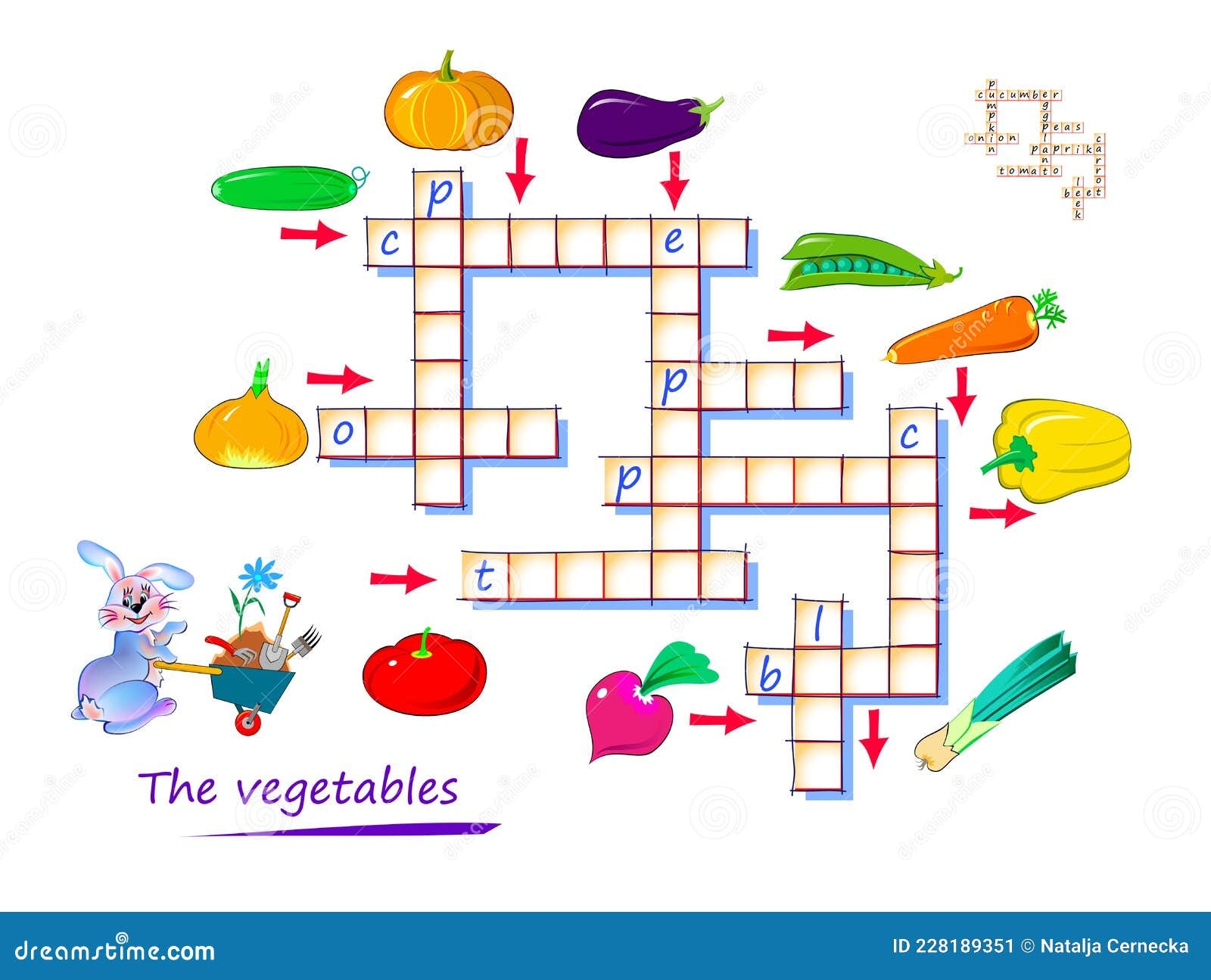 Crossword Puzzle Game For Kids Learn Vegetables Educational Page For Children To Study English Language And Words Stock Vector Illustration Of Cucumber English 228189351