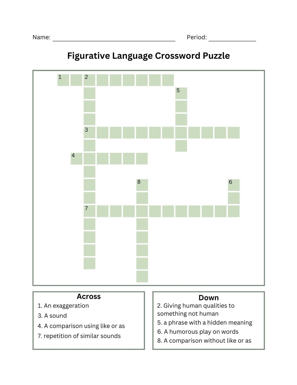 Figurative Language Puzzle Crossword WordMint