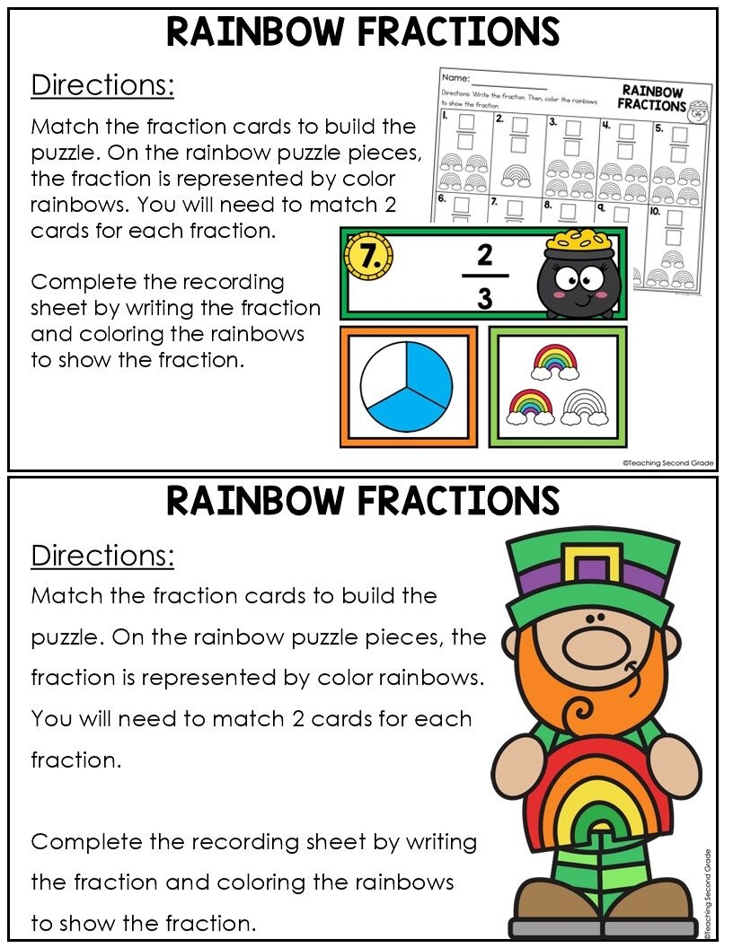 St Patrick s Day Fractions Math Center Rainbow Puzzle Matching