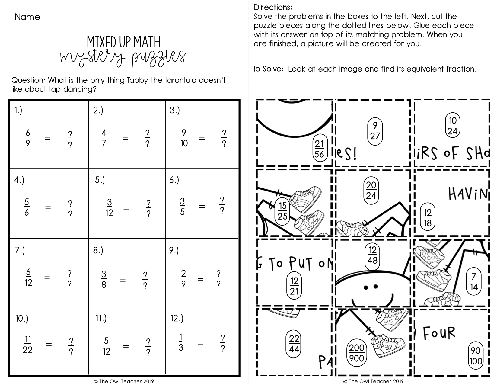 Equivalent Fractions Mixed Up Puzzles Printable U0026 Digital Google The Owl Teacher