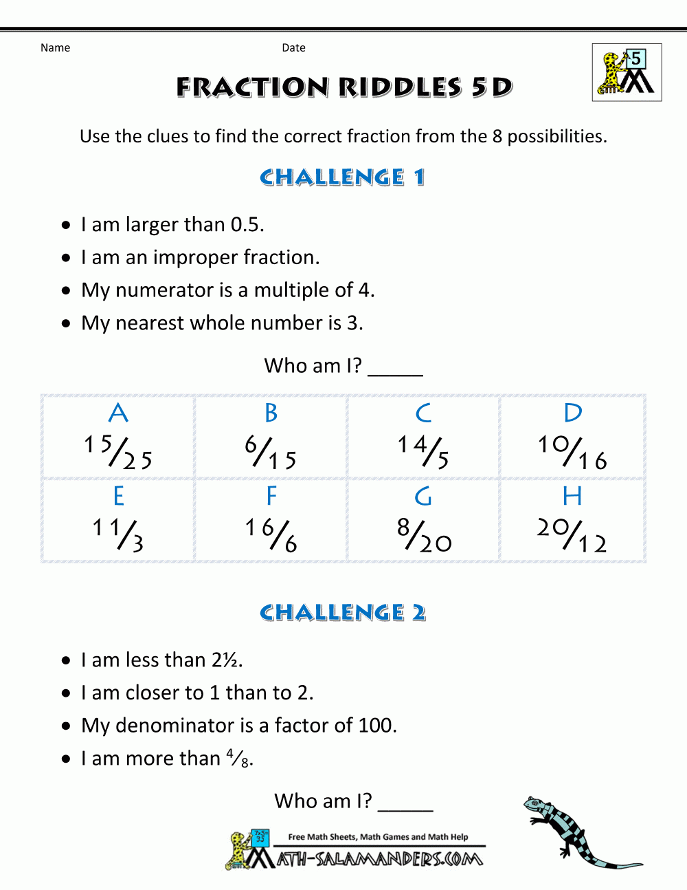 Free Printable Fraction Worksheets Fraction Riddles harder