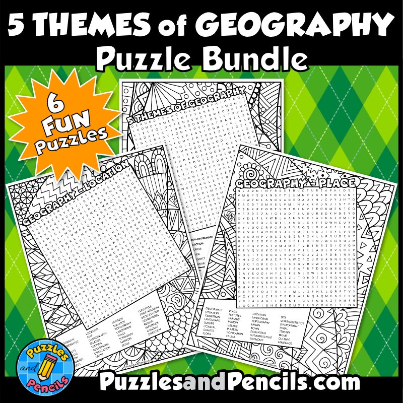 Five Themes Of Geography Word Search Puzzle BUNDLE