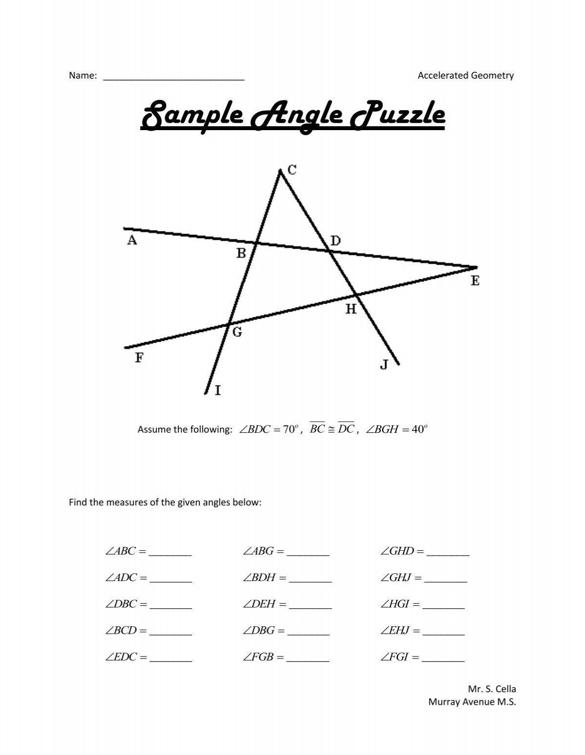 Geometry Angle Puzzle Worksheets
