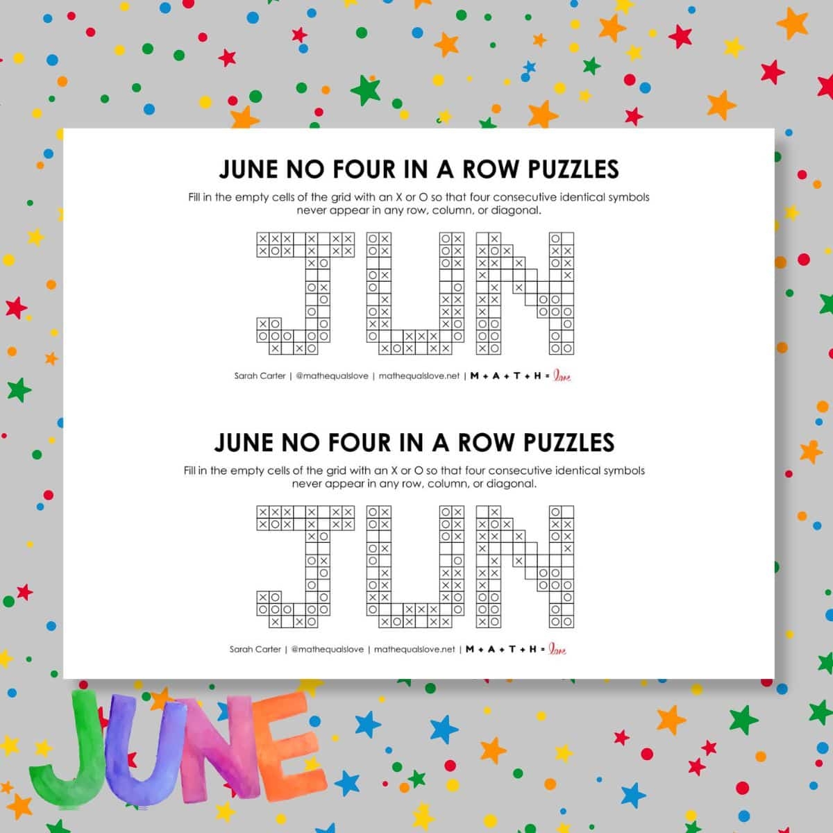 June No Four In A Row Puzzles Math U003d Love
