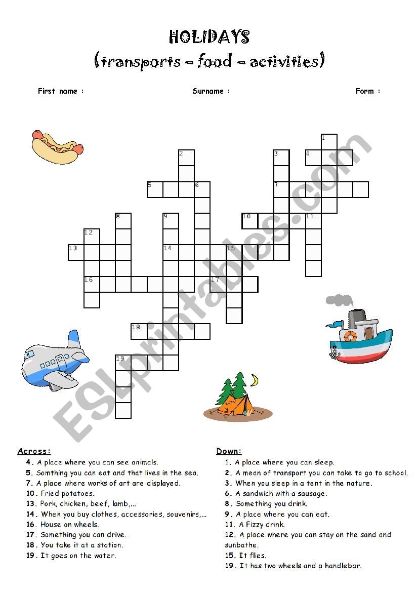 Vacation Crossword Puzzles Tree Valley Academy