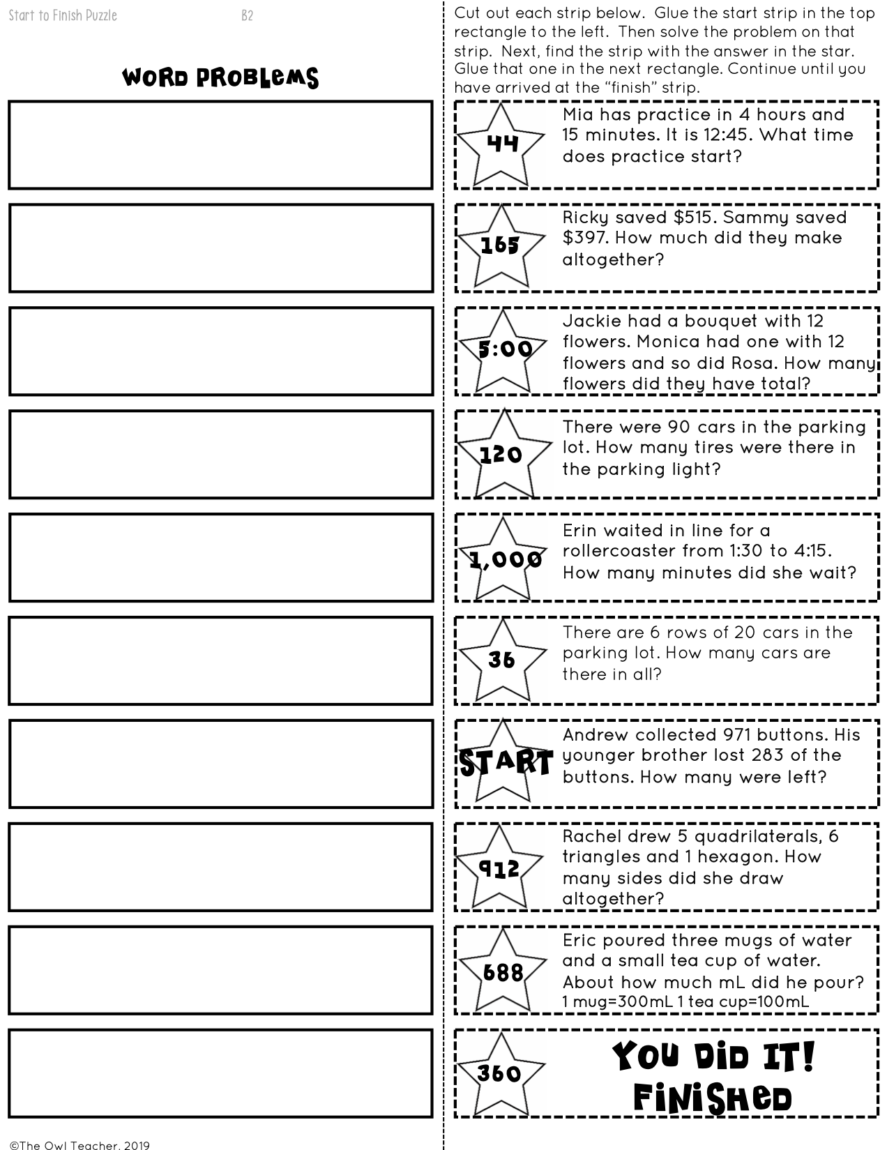 Math Word Problem Puzzle Worksheets