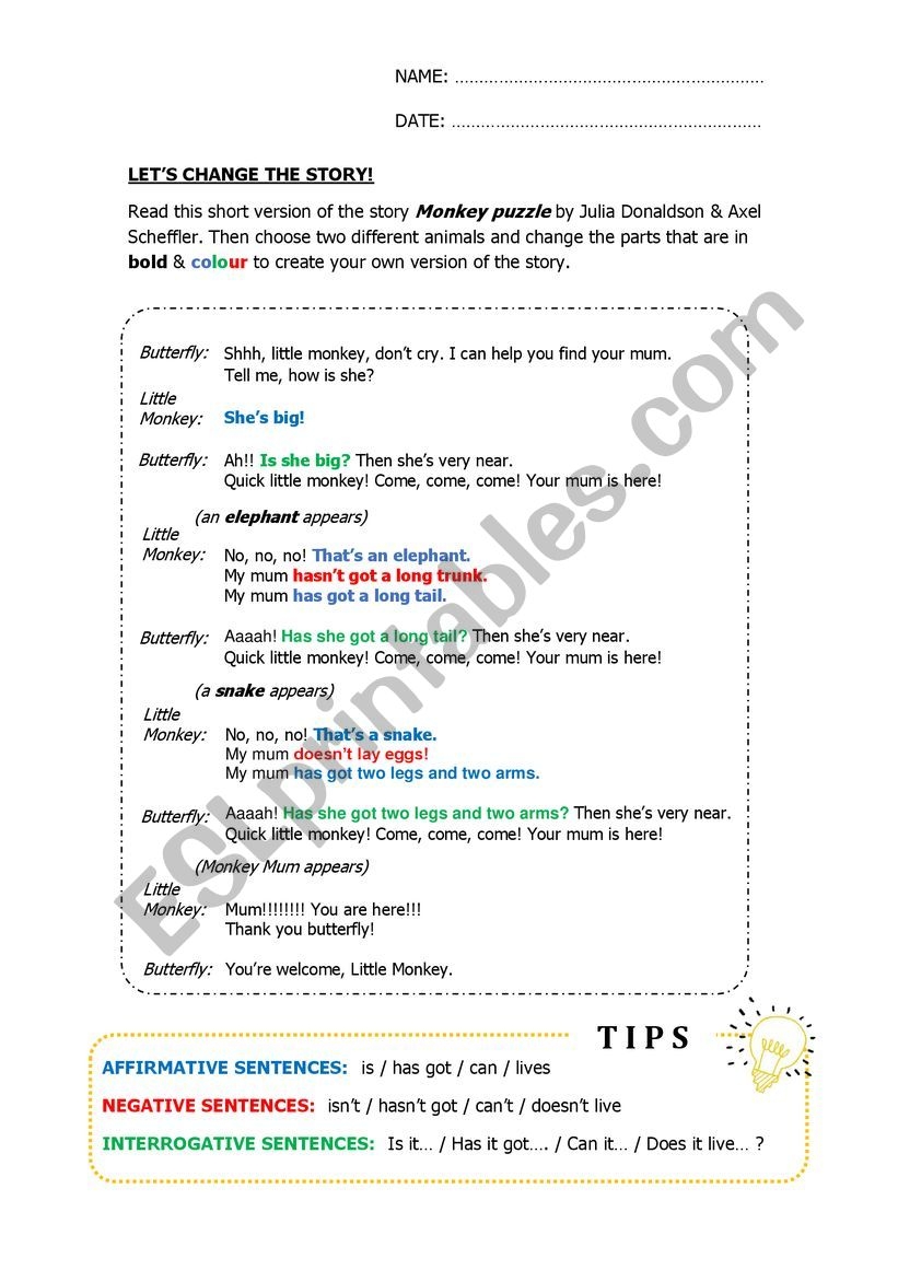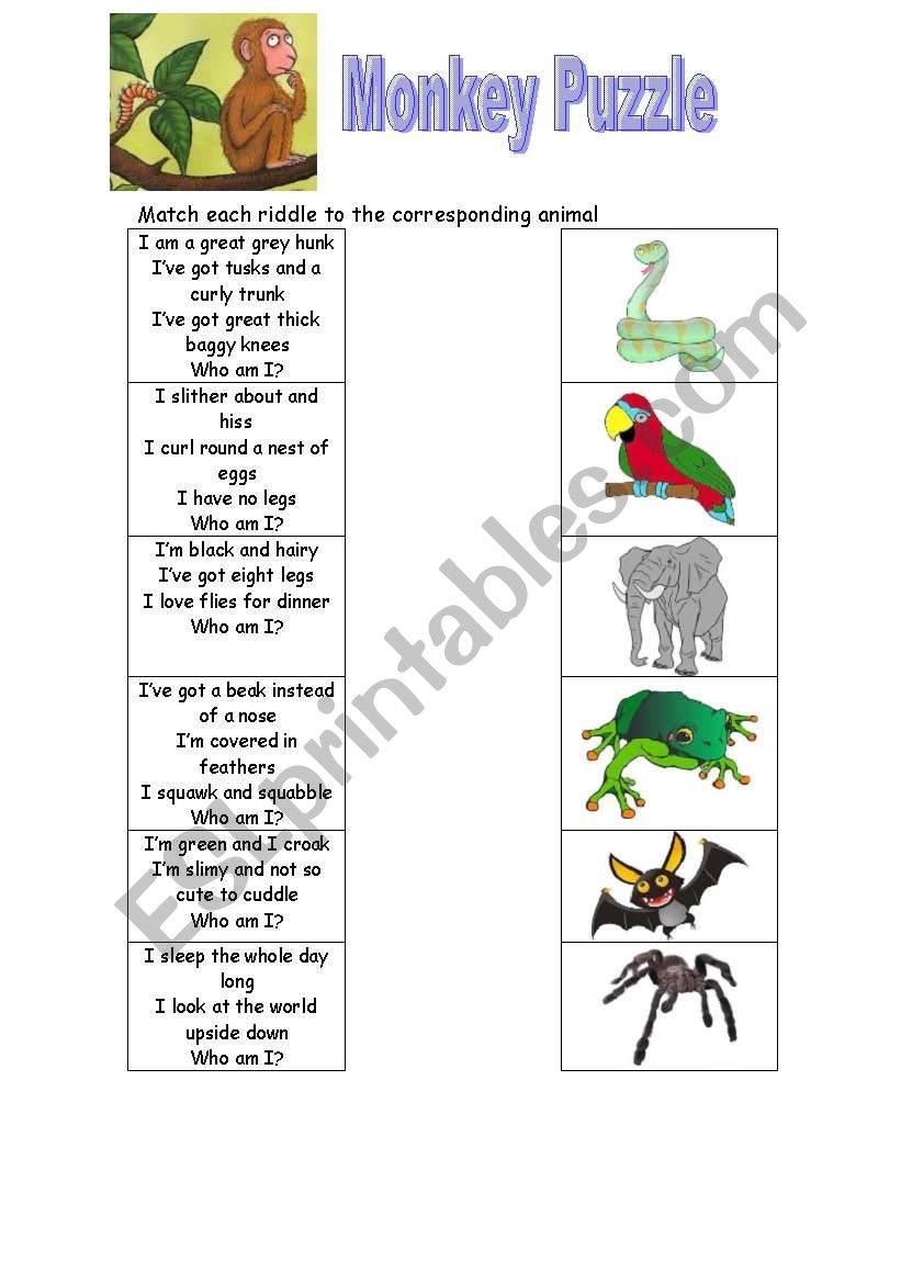 English Worksheets Monkey Puzzle