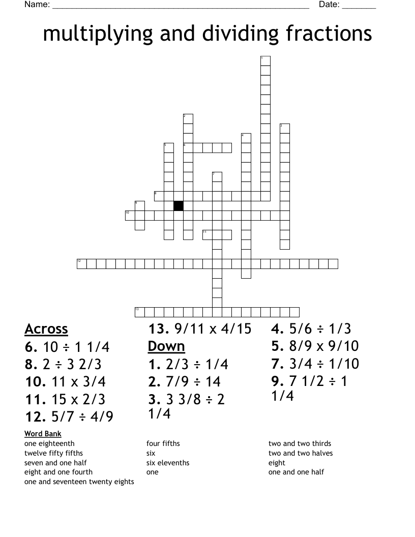 Multiplying And Dividing Fractions Crossword WordMint