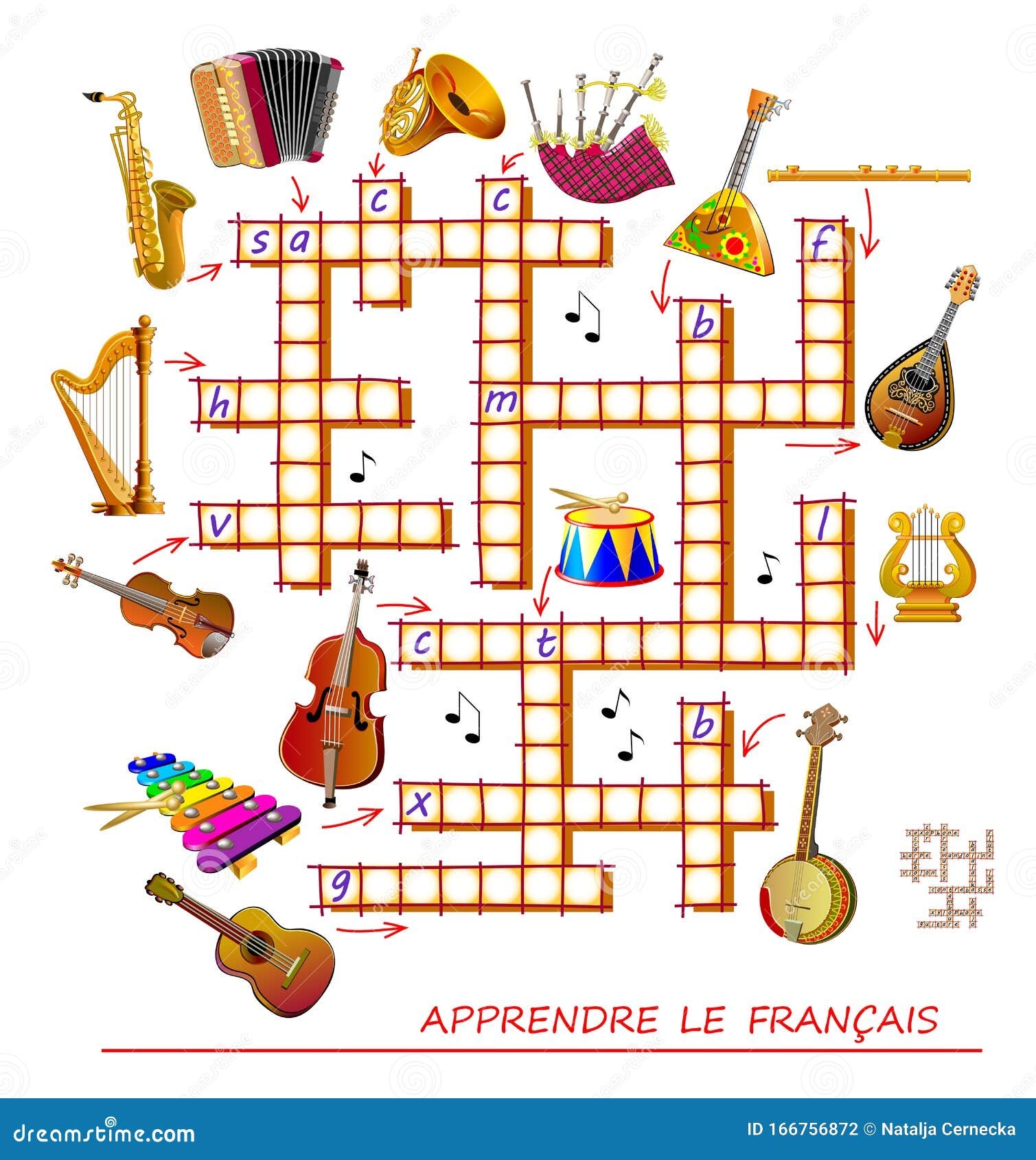 Crossword Puzzle Game With Musical Instruments Learn French Worksheets Library