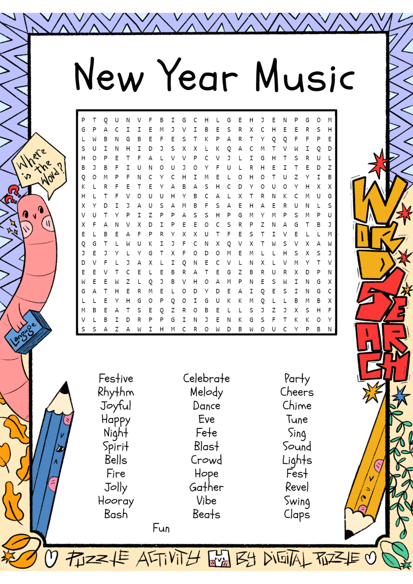 New Year Music Word Search Puzzle Worksheet Activity Made By Teachers