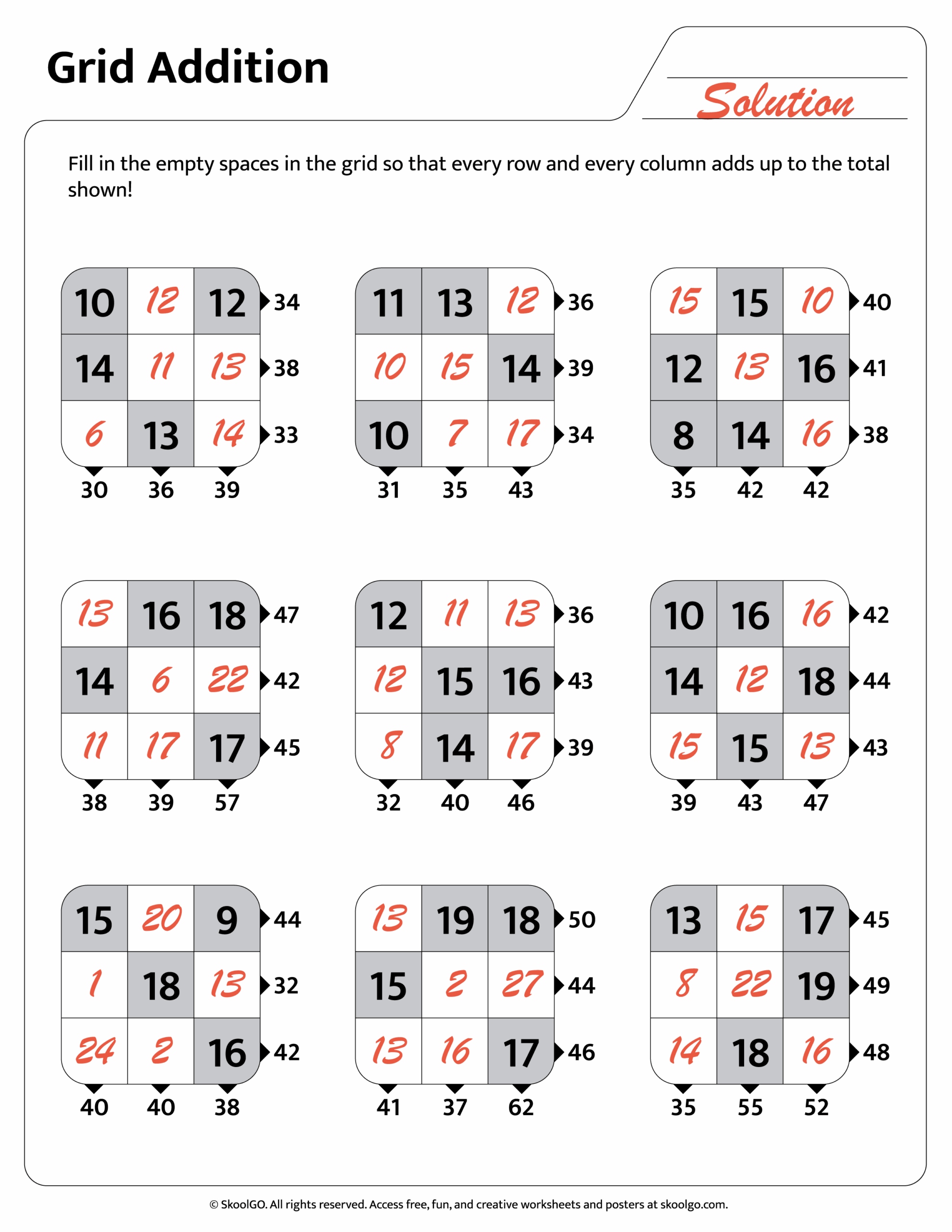 Fun Grid Addition Worksheet For Grades 2 4 Free PDF