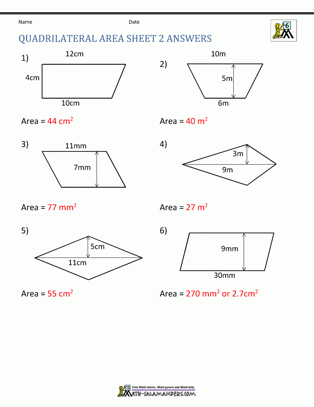 Area Of Quadrilateral Worksheets