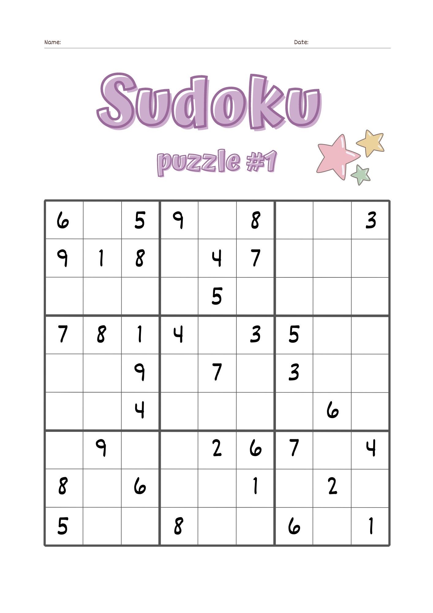 Sudoku Puzzle Worksheet Set Instant Download Kid friendly