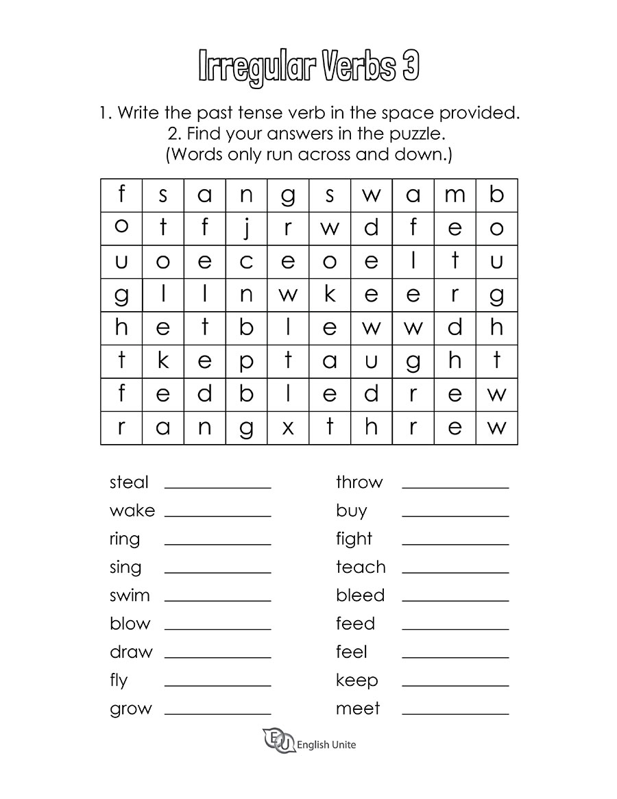 English Unite Irregular Verbs Word Search Puzzle 3